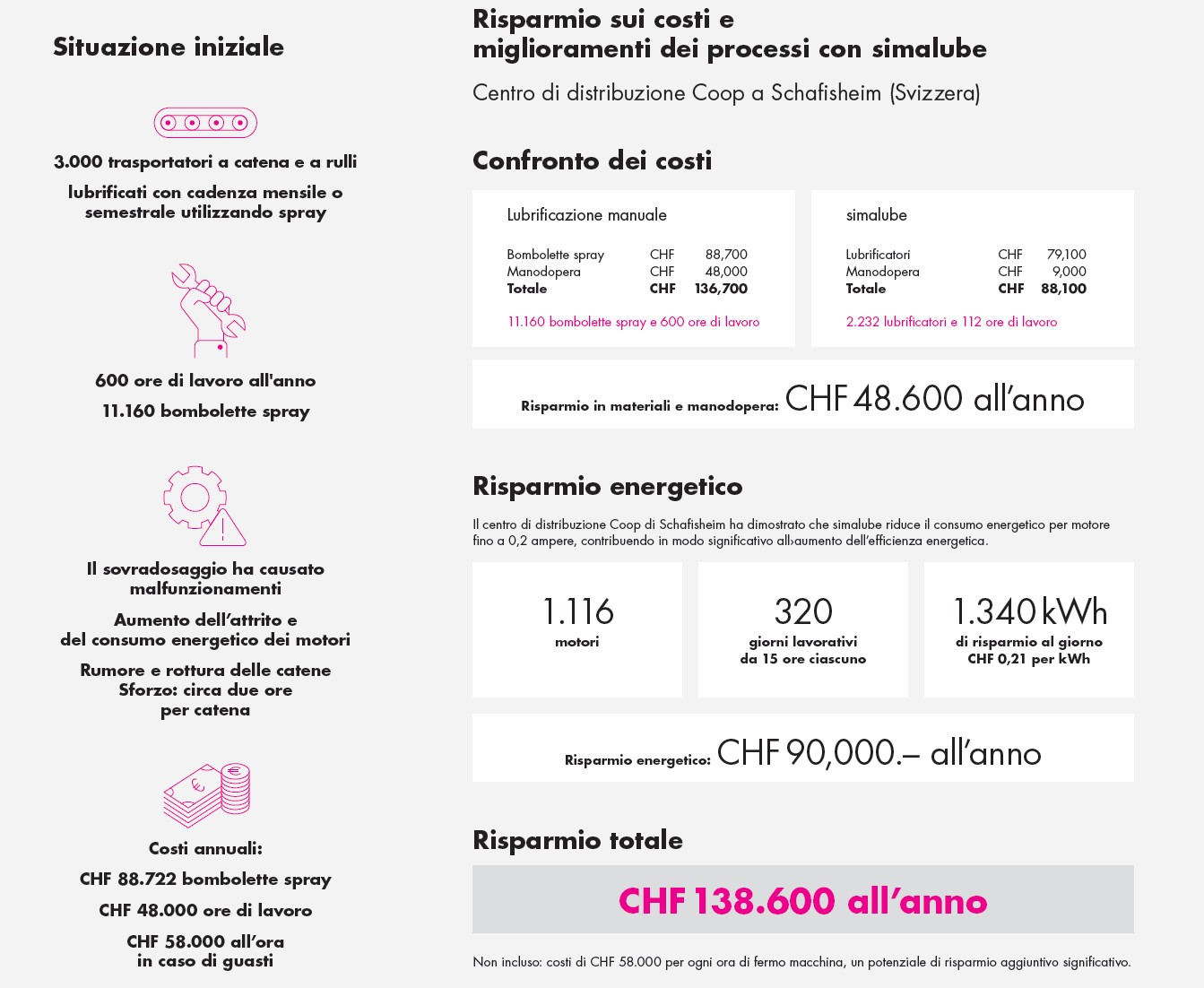 La lubrificazione automatica a punto singolo con simalube offre vantaggi misurabili, dalla riduzione delle vibrazioni a un significativo risparmio di costi ed energia.